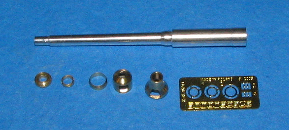 What you do get is a considerable amount of well machined and etched metal. In addition to the turned aluminum barrel, you get several bits for the muzzle brake, which is apparently a more complex assembly that I'd have thought. The instructions are quite good and show you how to put all the bits together. They also tell you how to modify the Tamiya kit to accept this barrel (which was apparently designed for the Skybow kit). Nothing major aside from some drilling.