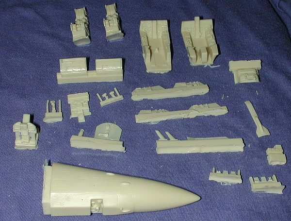 This Black Box set seems to have all that is needed to do a conversion using the Hasegawa 1/48 F-18D kit. You get a new nose as well as the usual cockpit bits and pieces. There is also a new suite of antennas and some new nose wheel doors. If you've done any resin cockpits before, then this one should be no different from them and looks pretty standard. There are the usual resin plugs that have to be removed before use. You will also have to supply the clear covers over the nose windows, but this shouldn't be a problem for those who are at this level of modeling. One thing for sure, you won't need nose weight. There is a note in the instructions stating that certain bu/no aircraft use a NACES seat. I haven't a clue as to if those are the seats supplied or not, but they certainly look the part.