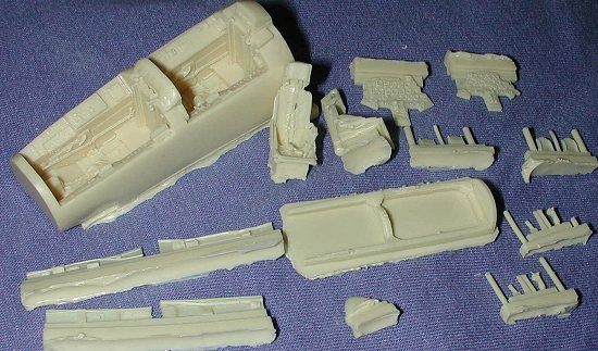 Late Note: it was pointed out to me that there is a problem with the spacing of the front and rear cockpits. To quote a reader "..the back seater would have his knees on his chest and the front seater would be operating the rudder pedals with his toes." Apparently, the center section of the cockpit is too far aft. The designer of this set also did a similar one for KMC and Verlinden, all of which had this glitch. I haven't a clue how one would fix it other than rather radical surgery.