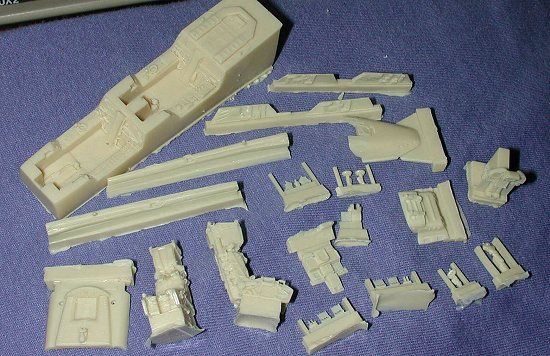 The Italeri F-18F is a kit that needs a lot of help in the cockpit department. Recent reviews have made that very apparent! This set is a total replacement for that kit's cockpit and includes parts for the inside of the canopy as well. As you can see, there are a lot of parts to this including sidewall panels, instrument panels, glare shields, rudder pedals, control sticks, throttles and a number of other small bits including a total canopy frame. Of course, this also includes a pair of bang seats (Martin Baker SJU-17As if I read the instructions correctly). One thing that the builder will have to do is to glue some plastic strips into the fuselage halves to properly seat the cockpit tub. A set of precise measurements is provided in the instructions for you do properly do this. You'll also have to provide a few pieces of stretched sprue or plastic rod to fully complete the set. Overall, I'd say this set is a must for the Italeri F-18F.