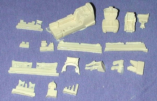 One doesn't normally think of Monogram kits as needing resin interiors, but the fact is that as good as the Monogram interiors are from the box, the Black Box replacement one is even better. This one is a most comprehensive replacement for all parts of the interior. In addition to the usual replacement tub and seat, you also get new canopy actuators, the boxes behind the seat, seat rails, and actually a replacement canopy frame. You also get two different styles of headrest for an early or later F-5E. Some scratchbuilding is needed to properly represent an open canopy as you need to stretch some sprue for the actuating assembly rods. Nothing that most intermediate modelers cannot handle.