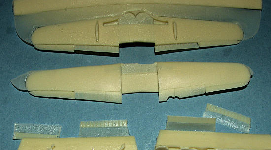 The Bagheera wing replacement is full resin and is a complete replacement of the kit wing. The set includes two full wings and two sets of flaps. The resin on the flap area and forward wheel wells is thin indeed. In fact, one of my wings has a chipped upper flap area and the forward wheel well part is broken away. The latter can be repaired once it is cut away from the sprue stub, something I was able to do in a few seconds with a touch of super glue, but finding something so thin to match the original molding for the upper wing flap section will take some thought. I should state that this set is a pre-production version and may not be identical to what will be sold. It should, however, point out that some sort of additional care needs to be taken with these wings prior to shipment as they can obviously be damaged while loose in the polybag unprotected. I recommend taping these pieces to a section of cardboard.