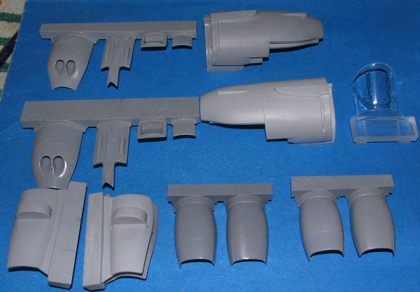 There are probably some of you out there who want to convert the big Trumpeter Lightning to an earlier version. Well, Cutting Edge has made that possible with this great new conversion set. There is more to a proper conversion than just changing the lower engine cowlings as the entire lower forward cowling is shallower on the earlier version. Cutting Edge has taken all the differences into consideration and provides you with all new forward cowling sections, new radiator sections (the older versions are smaller) and a new windscreen.