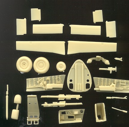 In addition to the interior and gun bay the set includes replacement resin wheels and a full selection of flaps, elevators and rudders. One simply removes the kit parts and replaces them with these bits.