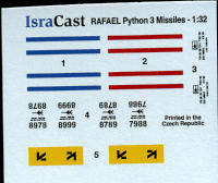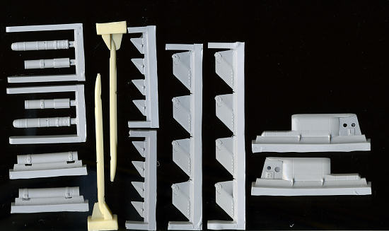 The body of the missile is in three parts and there are separate fore and aft fins. The pour stubs for the mounting adapters are marked as to which side of the pylon these will fit. All of these parts are superbly cast with no molding glitches at all. The set includes a decal sheet with all the bands and maintenance markings needed for the missiles and adapter.