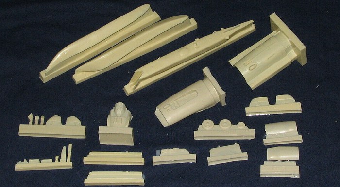 This IsraCast conversion set includes everything you need to make a super accurate representation of this new aircraft, save the decals, which can come from other sources, including IsraDecals. You get a completely new upper nose, full intake, tail-hook area, fin tip, conformal tanks, upper spine, gear doors and wheels, wing missile rails, and a number of other small bits and pieces. All are superbly cast without a hint of air bubbles or other defects one can find in resin.