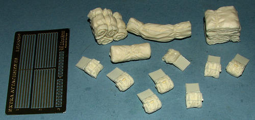 This set is designed to add a bunch of additional bags and rolls to your favorite armored vehicle. Though it states it is US Army, I'd bet some of these would look just fine on any Allied AFV. You get one each of somewhat large packs and rolls plus four each of two different designs of small packs. Included is an etched fret for the straps to tie down the larger packs to the vehicle. This fret includes separate buckles for added realism. Lion Roar includes a set of instructions so you will use the proper straps with the appropriate load.