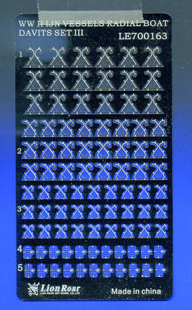 More neat 1/700 photoetched stuff from Lion Roar. This time it is a radial Boat Davits set for IJN vessels. There are Three different sizes to complement the kit you are building. The instructions are well done and show you just how to fold these. The instructions are also listed as Depth Charges Equipment and if there are any, it must be the near cylindrical cages that are also supplied. I've no clue what these are for, but boat fans will undoubtedly recognize them right off.