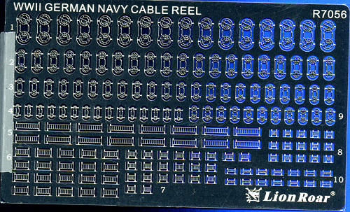 We are off to cable reels on this set. These could be found all over the ship and were used for a variety of purposes, including fire hoses. Lion Roar has provided five different sizes with this set. While the parts are truly small, those used to using things like this will find this set to be a real boon. In addition to the excellent etched bits, a set of instructions is included to be sure you use the right parts with the right sized reel.  As you can see, these are very nicely done and very small. There are probably enough for several ships.