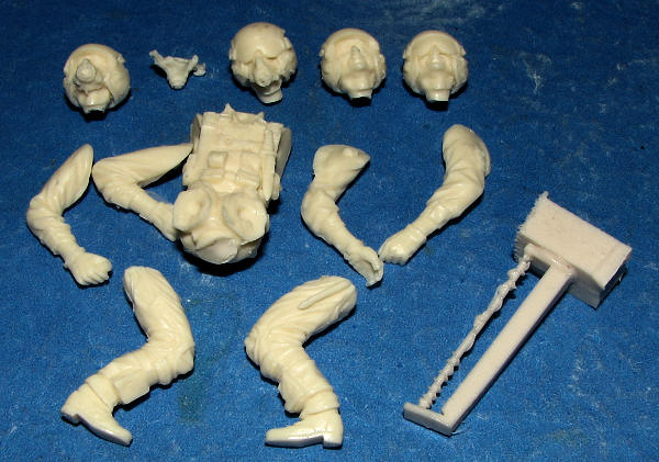 Continuing with Master Details superlative 1/32 pilot figures is this one from the Vietnam War. This is a USAF pilot and like many of their figures, provides a number of optional poses. As you can see from the image of the parts, there are four separate heads and two different sets of arms. The heads are two with masks attached and two without. Those without are crafted to look like Col Robin Olds, one of the more prominent personalities to emerge from that confict where he commanded the 8th TFW while flying F-4D Phantom II aircraft.