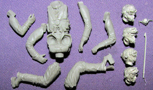 Continuing with their superb 1/32 pilot figures, Master Details has produced this one of a mid-late war Commonweath pilot sitting in his aircraft. The kit has two sets of arms so you can pose him holding onto the control stick or with arms on the sides of the cockpit or a combination of either. Also included are four cast metal heads. Two are wearing O2 masks and two are not. There are also two with the goggles atop the helmet and two with them being worn. A separate hose and mask are provided for the heads that are not wearing them.