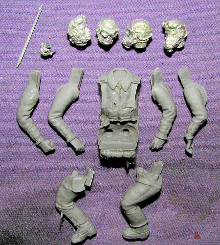 It has been over a year since Master Details has sent in any review items and I was beginning to wonder if they were still in business. Well, apparently they are as MM has received another of their fine 1/32 pilot figures. This one is a USAAF fighter pilot dressed for cold weather or high altitude. The kit has two sets of arms so you can pose him holding onto the control stick or with arms on the sides of the cockpit or a combination of either. Also included are four cast metal heads. Two are wearing O2 masks and two are not. There are also two with the goggles atop the helmet and two with them being worn. A separate hose and mask are provided for the heads that are not wearing them.