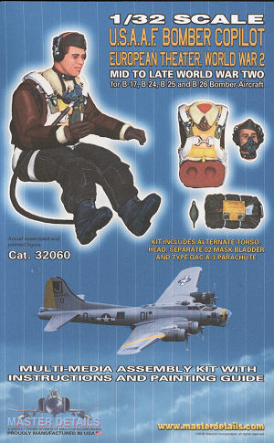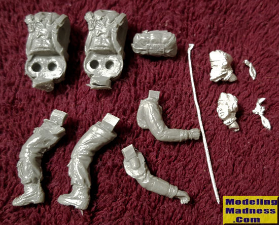 This one is typical Master Details' work in that you are provided with the basic parts of the figure in resin and the rest in cast metal. The main figure comes with two torsos. One is for the head wearing the )2 mask and the other is for when this mask is simply hanging by its straps around the neck. In addition,m you also get a parachute pack as these were not always worn, at least not until there was a possibility of the plane being shot down.