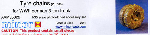 This is the first product I have seen from this Spanish company and I have to say that it is a pretty neat set. Minor does a variety of etched sets for vehicles and a few that are like this. These are tire chains for various German 3 ton trucks and from the look of the image on the card, they are to be put on the outside wheels of a set of dualies.