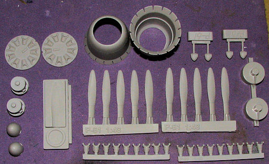 This new set from Modelshack takes care of all the issues related to the engine, cowling and propellers. The set can be used on either kit and provides adapters to use on the Great Wall kit. These adapters are not needed on the Monogram kit due to its design. In general, the Monogram kit does not provide a second row of cylinders, using a flat representation to take care of that. The GWH kit does, but the engine is not accurate. Of course, this set is for those who do not want to open cowling panels.