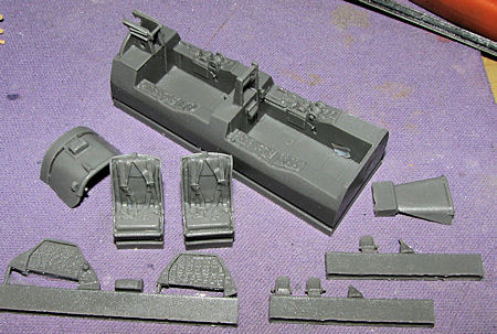 Unfortunately, on my kit, the heavy cockpit tub rattling around in the container broke away the two control sticks, one of the rudder pedals and the console bits simply disappeared. I really wish Pavla would take better care of packaging fragile parts as rarely do I get one of their cockpit sets that has not had damage to these fine bits. Simply sandwiching the bits between two pieces of cardboard held together with a piece of tape would fix it.