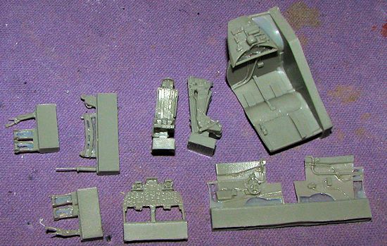 The set has a new cockpit tub with detailed rear area, two new bang seats, a new instrument panel, rudder pedals, control sticks and side panels. There is also a new area for the middle of the canopy and, something that is missing from the Airfix kit, a canopy extension/retraction strut.