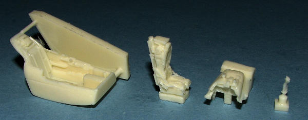 The latest cockpit set from Pavla is this one for the new Trumpeter 1/72 Lightning F.6. Though I've not seen this kit as of yet, apparently the stock cockpit is rather barren. This one, however, is not and has tons of detail built right into the tub. The set also includes a highly detailed instrument panel and coaming along with a new control stick and very nicely done bang seat with straps. This appears to be pretty much a drop fit and so for those who want the additional detail afforded by this set, it couldn't be any simpler. What's even better, no large pour stub on the bottom of the cockpit tub. Just a few small attachment points to remove.