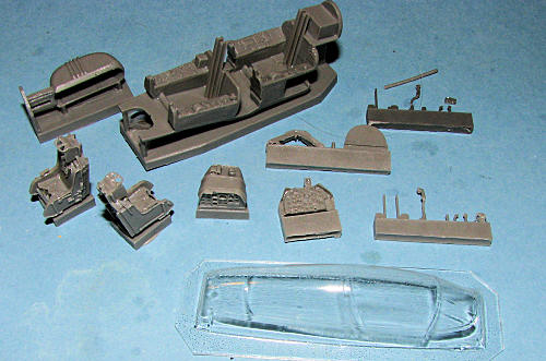 This new set takes care of that problem with a completely new tub and nose wheel well along with new instrument panels, seats, sticks, rudder pedals and a number of other items that go on the panel or interior fuselage side. The molding is very nicely done and there is full painting information provided in the three page instructions. A few parts broke free from the pour stub during shipping and so will need to be repaired before use. Also included in the set is a new vacuformed canopy so you can display it open if you wish. It is quite clear and made from relatively thick plastic so those who find ultra-thin vac bits to be frustrating will not have an issue with this one. Part of the upgrade is a brace and piston for the canopy itself. Like all Pavla resin, this one is very well done and will really enhance that old Matchbox kit better than any other single piece upgrade.