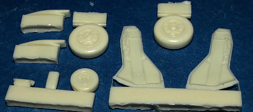 I have to assume that these are basically direct replacements for the kit parts as there are no instructions included. One nice thing I noticed is that the brake lines are molded into the inside of the main gear doors. A bit of clean-up and these are ready to paint and attach.