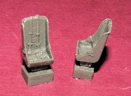 Now we get to some seats. This set includes a pair of seats for the Heller T-28. These are the correct shape and Pavla has molded a seat harness into each one. They are a simple upgrade as one basically preps them, paints them and installs them into the kit, once removed from the pour stub.