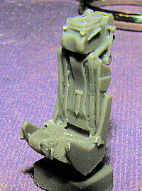 Thanks to Pavla's recent release of the Vampire 6 cockpit set, we have the seat available as a separate item. Though it is designed for the Amodel Mk 6 kit, It should work in any late Vampire or Venom that uses this sort of seat, including the ancient Frog kit. As usual, Pavla has molded the harness and seat cushion in with this one. The pull handle on the top of the seat has broken on this one, a common problem with resin seats. A length of wire or stretched sprue will take care of that.