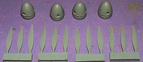 This next set from Pavla is for the Airfix 1/72 Lancaster kit. There is no indication if it is the older or newer mold, so perhaps it will fit both. Perhaps even the older Matchbox kit. This is a set of the pointy blade DeHavilland DH 5/40 propellers as well as new spinners. Assembly is simple; simply remove the pour stub, glue and paint. Overall it is a very nice set and well worth the effort of installing.