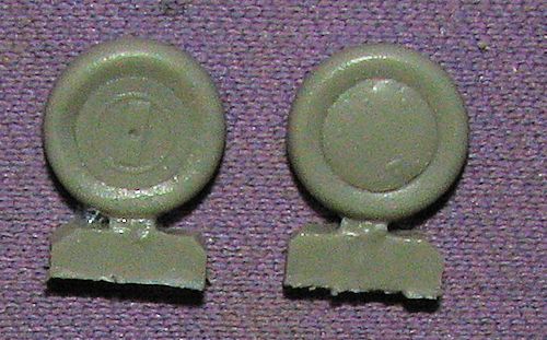 This is a really simple set. Basically a pair of replacement wheels for the new Airfix Gloster Gladiator. These are ready to be removed from the pour stub, have the axle hole made the right size and installed. Apparently the Airfix kit is lacking in this department, perhaps offering only the spoked wheels without the wheel covers. Anyway, this is an easy fix for your Airfix kit.