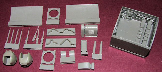 Next in the latest line of Pavla upgrade pieces is a new set that completely caught me by surprise. This is an upper turret set for the huge Monogram 1/32 B-36. It includes a gun compartment, the two outer fuselage doors, gun mounts, two two-piece gun turrets, barrels, shell ejection chutes, what looks like a motor for the doors and the incoming shell bands. This will require a bit of modification in regards to removing the areas of the kit that hold the outer doors. The resin doors will fit to the outside of the fuselage as they simply slid down the side. The set comes with 12 step construction instructions to help you get everything in the right place. If you are going to build this beast, you might as well make it look interesting.
