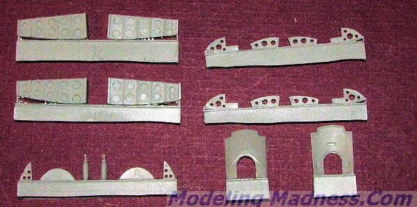 This is the first set I've seen for the new Airfix 1/72 Blenheim I kit and typical of Pavla sets, it is quite complete and very detailed. This set is used to trick out the wheel wells and is used in conjunction with kit parts. One does have to do some prep work in terms of thinning down the inside of the lower wings in this area so it is not a simple 'plug and play' set. You basically get new well interior sides, a rear bulkhead and various interior braces. A pair of small pistons not included in the model are provided as are replacement gear doors.