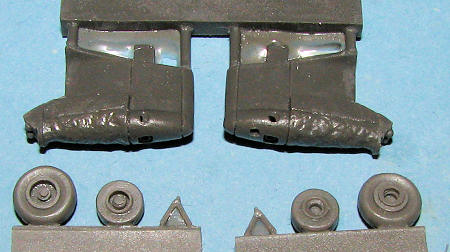 This is the final of three different replacement main gear housings, wheels and nose wheels for the new Hobby Boss 1/72 Lynx. This particular set is for the HAS.2 (late version) that is used by the Royal Navy and others with the canvas outer pylon coverings. It seems that the main difference is that the canval area is larger and there is an opening in the back of it for some sort of antenna.The main gear strut will come from the kit and the kit provides replacement wheels and an oleo scissor. These are very nicely molded and should require minimum clean-up prior to use.