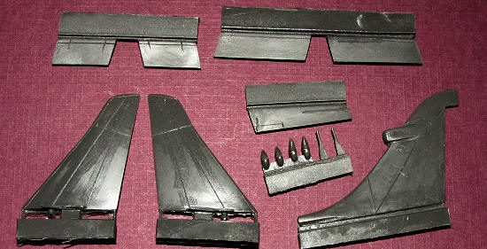 This final new bit from Pavla is a set of control surfaces for the Airfix Sea Harrier FRS.1. It includes a new fin and rudder, new stabilators, new ailerions, new flaps and the set includes flap hinges for both the up and down position. These are, for the most part, direct replacements for kit parts, though I'm pretty sure you'll have to cut away the existing ailerons and flaps to install them on the wings. No instructions are included, but none are needed.