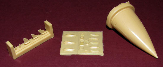 This set includes a corrected and super detailed radome, as well as corrected and super detailed antenna fairings for any F-16 kit except Tamiya. The antennas will fit without modification. While the radome was designed with the Hasegawa kit in mind, it can be made to fit any kit with slight modification.
