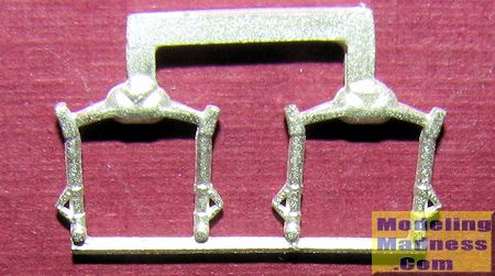This Scale Aircraft Conversions set is for the Eduard 1/144 kit. There are two sets in the package which is nice as it allows you to use them on two planes. I forget if Eduard packages these kits in pairs, but if so, then this is a natural. Basically, these are the main landing gear. They are direct replacements for the kit item and should be a bit less 'wobby'. They also have the benefit of having a bit of 'bend' to them so you can get the gear properly aligned.