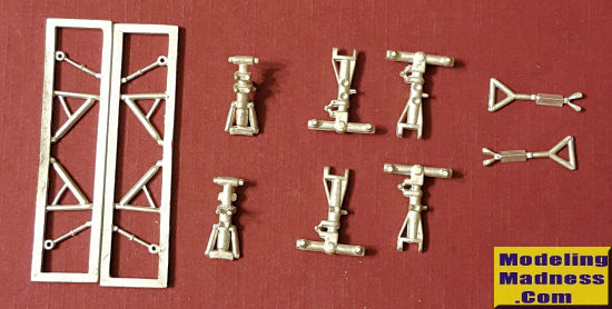 This Scale Aircraft Conversions set for the Minicraft 1/144 DC-8 and kit that has been around for a bit but is still very nice. Normally SAC provides two sets of gear for airliner kits and this one is no exception. You get two main gear legs and the four piece retraction/braces. A nose gear and its retraction strut/brace is also included. These are direct replacements for the kit parts and are nicely molded.