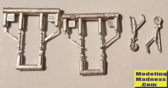This Scale Aircraft Conversions set for the Eduard 1/144 A-4E/F Skyhawk kit. There are two full sets in the package. It consists of the main landing gear legs and the nose gear with attached nose wheel. The Eduard kit appears to be simply a reboxing (rebagging actually) of the Platz kit with a larger decal sheet and masks. These are direct replacements for the kit parts. Like all SAC sets, they are nicely molded.