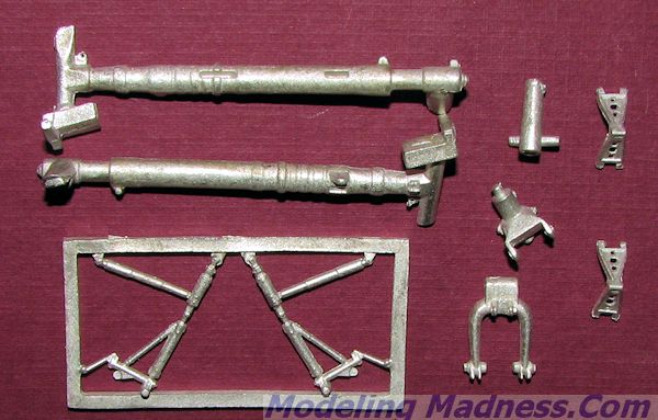 This Scale Aircraft Conversions set is for the rather large and apparently rather popular Airfix 1/48 Typhoon Ib. The main gear legs are massive as you'd expect in this scale and the set includes separate opleos as well as retraction struts, which are encased in a metal sprue to keep them safe. The tail gear assembly is also included and consists of three pieces. These are very nicely molded and are direct replacements for the kit parts.