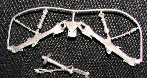This Scale Aircraft Conversions set is for a kit that has been around for a while, the Hasegawa 1/32 F-104 Starfighter. This is a pretty basic set that consists of the one-piece main gear legs and attached struts. You'll notice that there is a metal sprue to hold all the bits in place and prevent breakage. A metal nose gear strut with retraction strut is included. The parts are superbly cast and as is the norm with metal gear, some of the thinner bits may need to be straightened a bit as they frequently get bent during shipping.