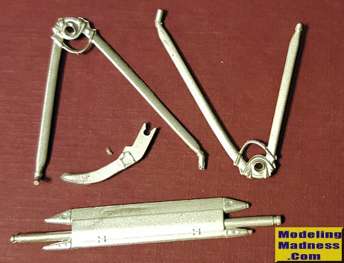 This Scale Aircraft Conversions set is for the Wingnut Wings 1/32 Pfalz D. XII kit. As is typical of WWI types, it is not a complex set, consisting of the two main gear strut assemblies, a spreader bar and axle along with a new tail skid. These are nicely molded and are direct replacements for the kit parts.