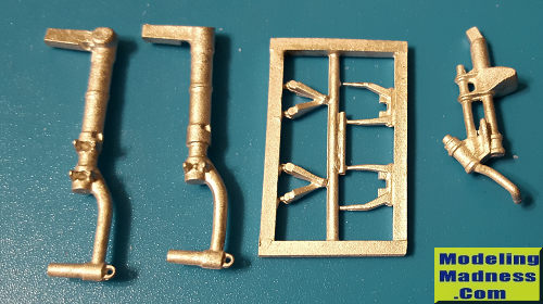 This Scale Aircraft Conversions set is for the new Revell 1/32 P-51D Mustang. Apparently this kit has already spawned several upgrade sets and now you can add a nice set of metal gear to the list. It includes the two main gear legs, separate oleo scissors and gear door attachments along with its rather tall tail wheel gear piece. These nicely molded pieces are direct replacements for the kit parts.