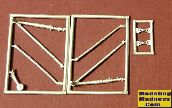 This Scale Aircraft Conversions set for the ICM 1/32 I-16. This kit has also been reboxed by Revell and by Hasegawa. The set is pretty standard stuff consisting of two new landing gear legs and oleo scissors with their equally long downlock braces. A replacement tail wheel assembly is also included. These are direct replacements for the kit parts and are nicely molded.