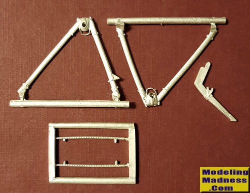 This Scale Aircraft Conversions set for the Wingnut Wings 1/32 DFW C.V kit. This set consists of two main gear leg pieces, a tail strut and two smaller sections that I'm assuming fit on the main gear legs. Normally these sets include an axle piece but apparently you use the one that came in the kit. These are direct replacements for the kit parts and are nicely molded.