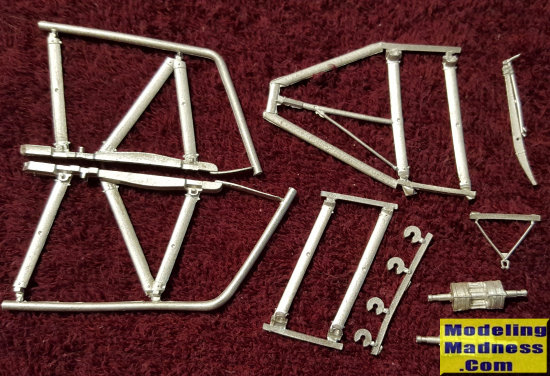 This Scale Aircraft Conversions set for the Wingnut Wings 1/32 Gotha G.1. This is one of the more complex WWI sets due to the two separate dual strut assemblies. This set includes all of the main gear struts plust the small axle assembly as well as a detailed tail skid assembly. These are direct replacements for the kit parts and are nicely molded.