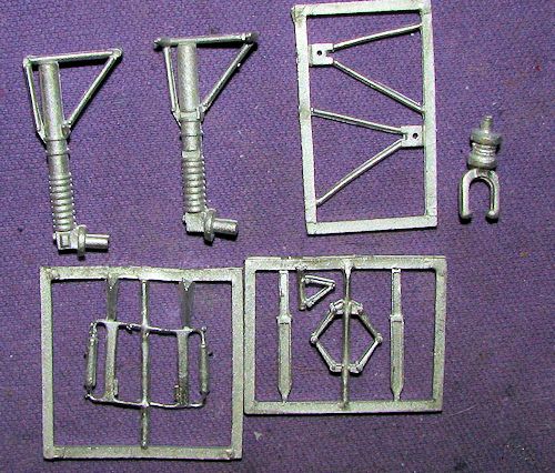 This Scale Aircraft Conversions set is for the very nice Revell 1/48 Bf-110G kits that have been released over the years. It includes both of the main gear legs and the tail fork. The various retraction struts, oleo scissors and such are molded in metal sprues to keep the parts from being bent. This set is very nicely molded. As happens, you may end up bending some of the smaller bits, but these are easily straightened.