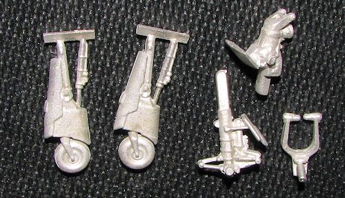 I really like it that Scale Aircraft Conversions takes the time to do sets for kits that have been around a long time. In this case, the set is for the old Monogram 1/48 AV-8A Harrier. This is not a complex set consisting of the main landing gear strut, a two piece nose gear strut and the wing outriggers. A major benefit of these sorts of sets is that often times older kits are missing pieces and if they are landing gear, you now have what's needed to build the kit. These are direct replacements for the kit bits.