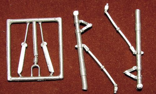 This Scale Aircraft Conversions set is for the Special Hobby 1/48 Fairey Firefly. The set is pretty basic and contains the two main landing gear legs with their retraction struts along with a tail wheel leg. The retraction struts are encased in a metal sprue to prevent damage. These are direct replacements for the kit gear. They are nicely molded and will add some heft to your next kit. These might also fit the Grand Phoenix Firefly kit