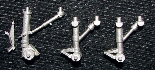 This Scale Aircraft Conversions set is for the very large Academy 1/48 CH/MH-53 helicopter kit. As befits a helo, the landing gear are pretty basic items. This set includes two new main gear struts and a nose gear strut. The other item in the photo is the tail bumper. These parts are very nicely cast and are a direct replacement for the kit parts. You can order these direct athttp://www.scaleaircraftconversions.com if your local hobby shop or favorite on-line retailer does not stock them.