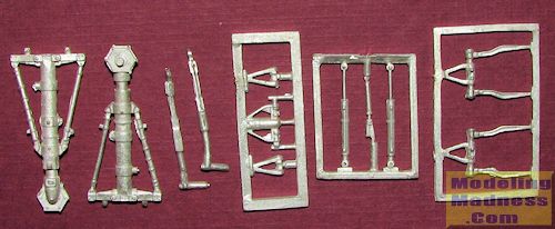 This new set from Scale Aircraft Conversions is for the new Trumpeter 1/48 F-106 Delta Dart. The F-106 landing gear is a lot more complex that one would think as you can see by the image. The set constins both main and nose gear legs as well as various retraction struts and other bits. This set is nicely molded with fine parts protected in metal sprues. The set is a direct replacement for kit parts.