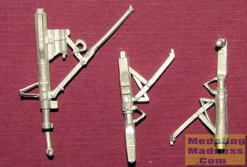 This Scale Aircraft Conversions set is for the GWH 1/48 F-15 Eagle kits. Unlike many modern aircraft, the F-15's landing gear is pretty simple stuff. Basically two main gear legs with the retraction strut molded in place. Same goes for the nose gear leg, making this one easy to use. This set is nicely molded and is a direct replacement for the kit parts.