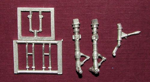 This Scale Aircraft Conversions set is for the Hasegawa 1/48 P-40 Warhawk series of kits. The set includes the main gear struts with oleos, the tail strut, and the two other retraction bits for the main gear. These latter parts are molded within a metal sprue so that they are not damaged during shipment. This set is nicely molded and is a direct replacement for the kit parts.